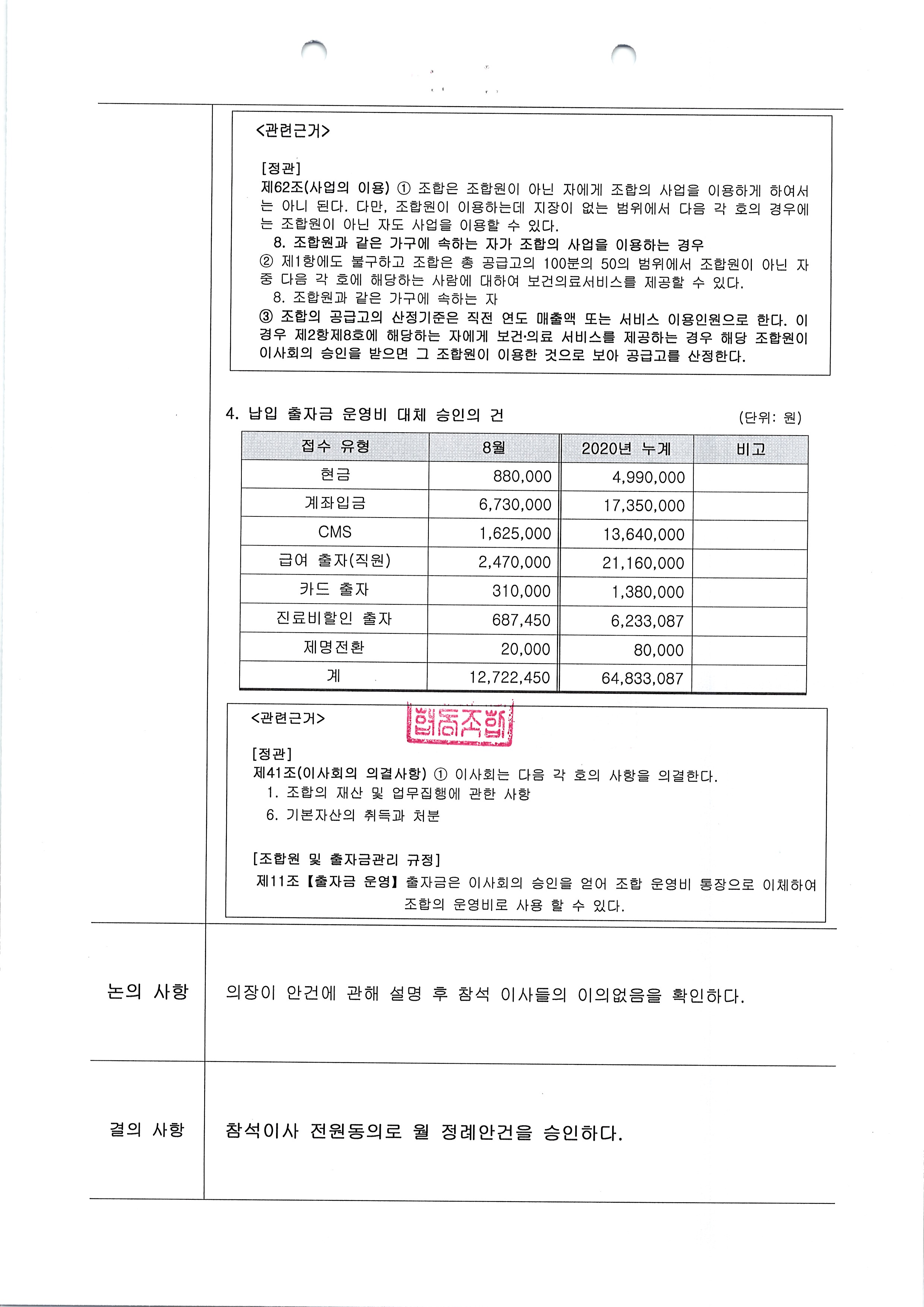 [2020-08] 정기이사회 결과보고