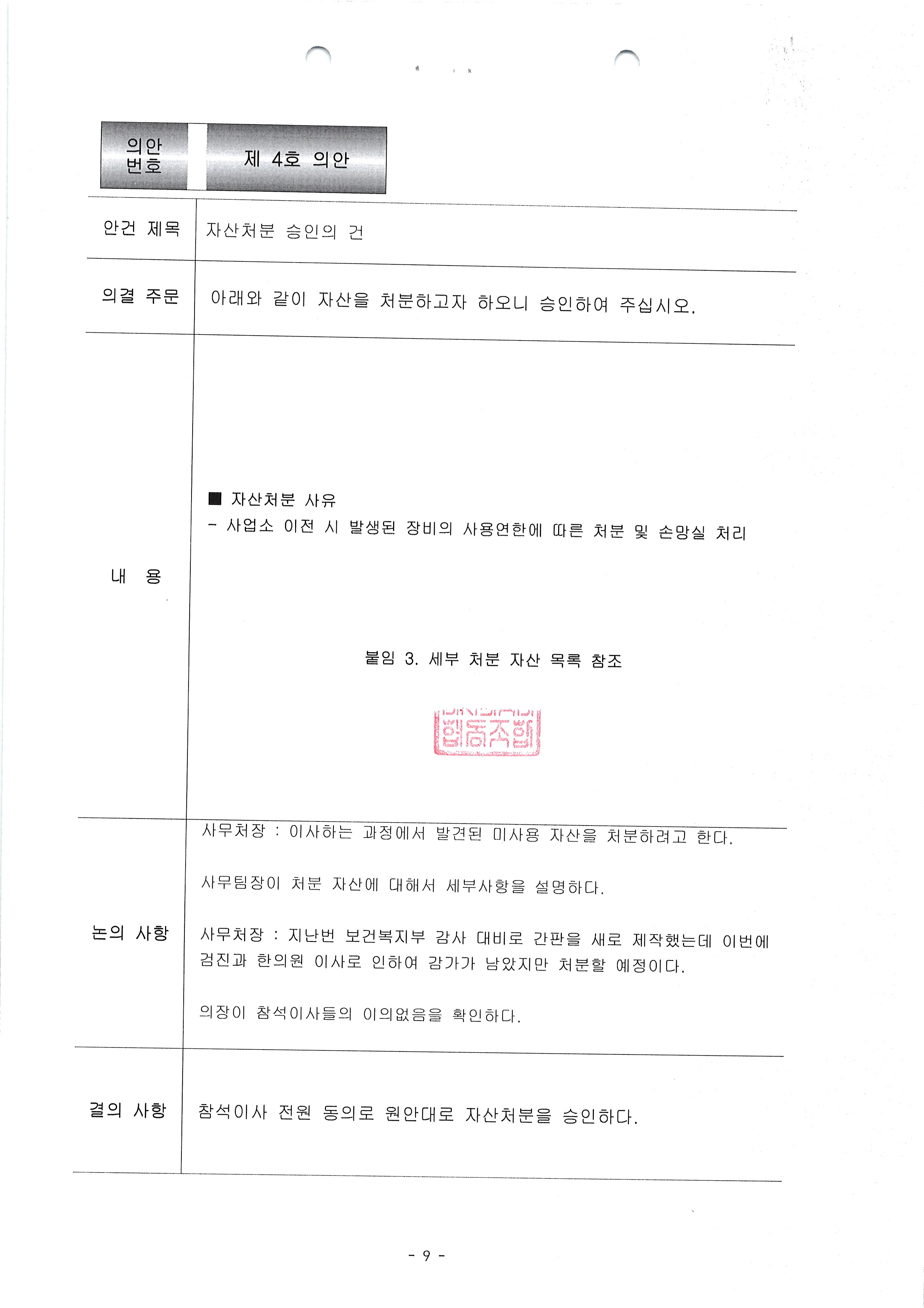 이사회회의록