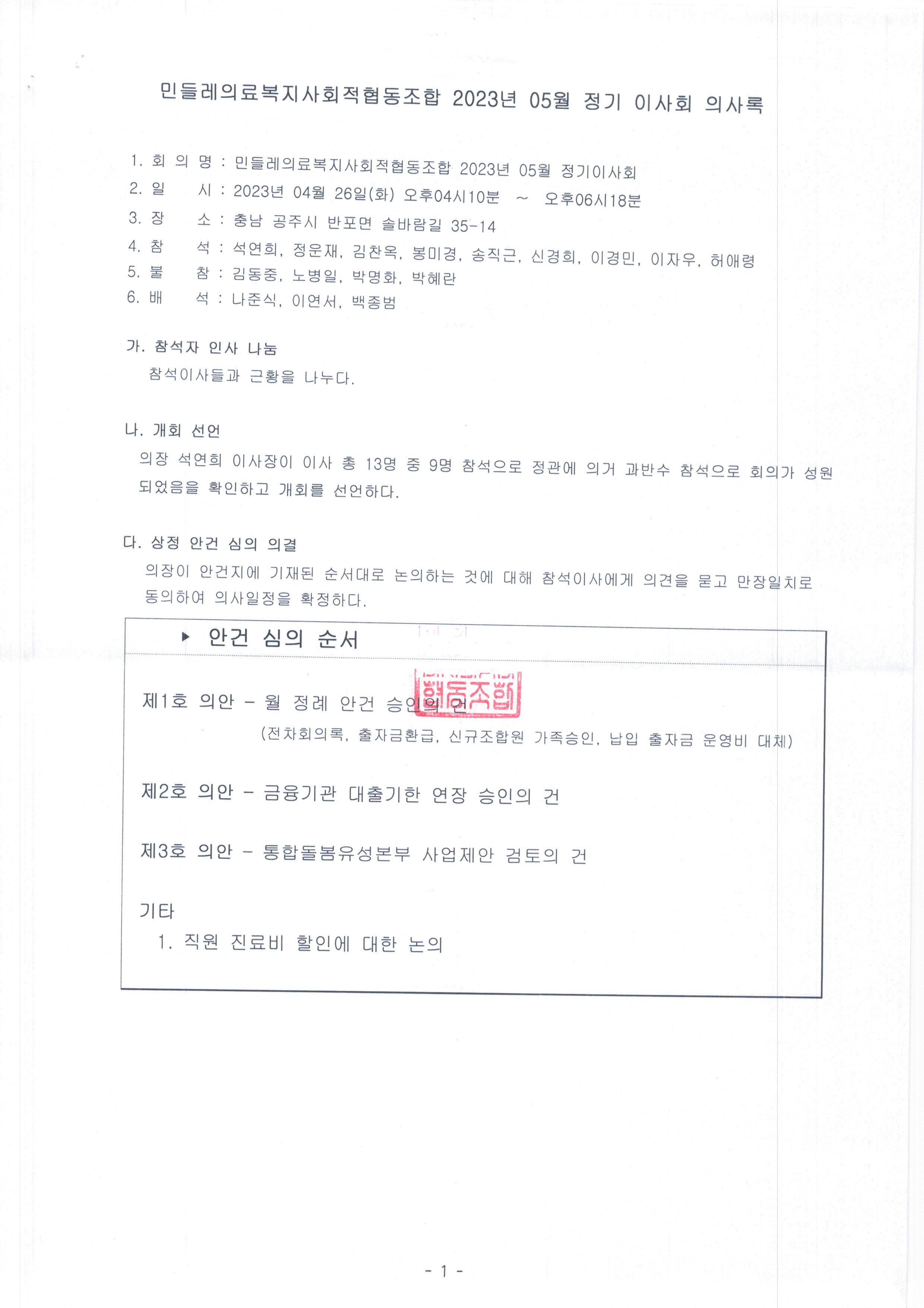[2023-05] 정기이사회 결과보고